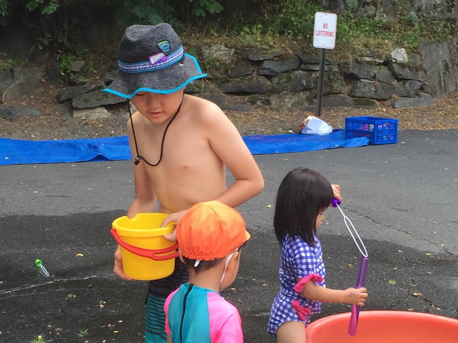 こちらはくじら組のお友だち。先生のお話を聞いてから、スライム作りを始めましたよー。