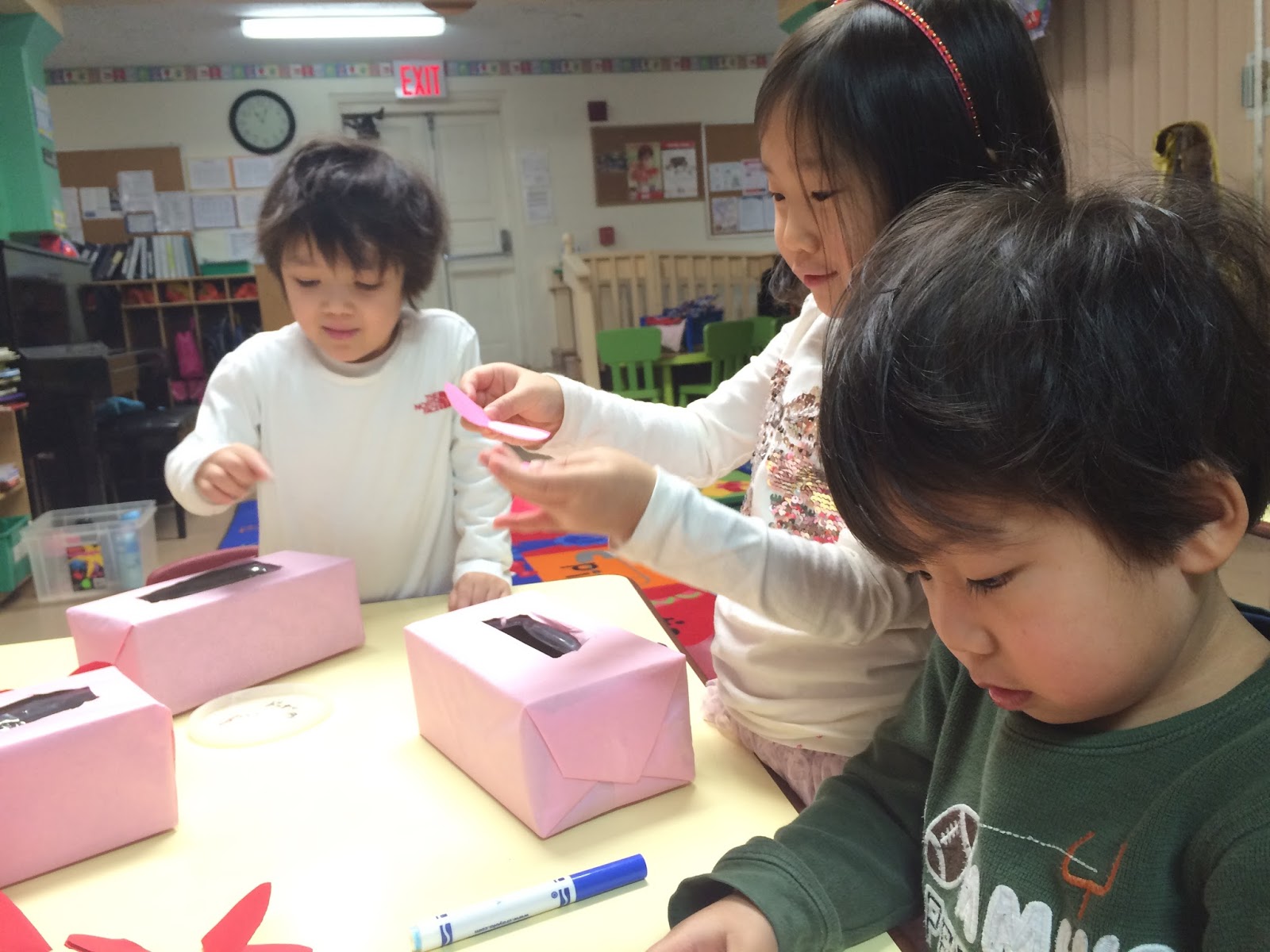 もうすぐバレンタインデーですね!ドーナツB組では、バレンタインデーにちなんだアート製作を行いました。